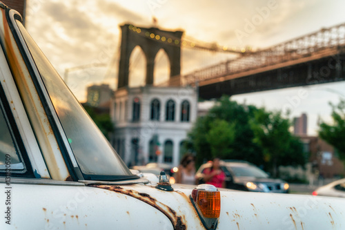 © STUDIO MELANGE, Obraz premium Most Brookliński. Most jest często przedstawiany w szerokich ujęciach panoram w Nowym Jorku w telewizji i filmie.