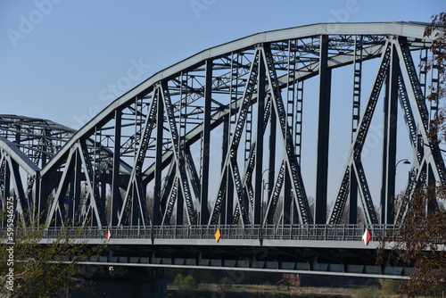 Naklejka premium Most drogowy na rzece Wisła w Toruniu, konstrukcja łukowa, przęsła stalowe,
