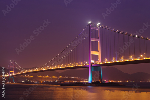 © leungchopan, Naklejka premium Most kablowy w Hongkongu w nocy