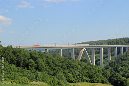 © calla, Fototapeta premium Most kolejowy z pociągiem