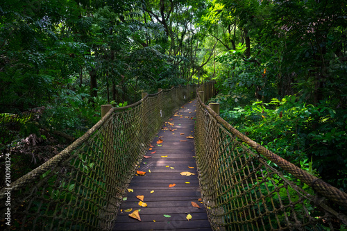 © nathanallen, Obraz premium Most linowy i chodnik w Singapurze Jungle Wetland