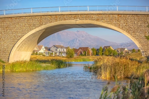 Fototapeta premium Most łukowy nad jeziorem Oquirrh w Daybreak w stanie Utah