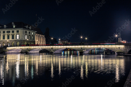 © gdefilip, Obraz premium Most na Limmat w nocy w Zurychu