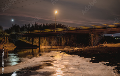 © Dreamnordno, Obraz premium Most na zamarźnietej rzece w nocy