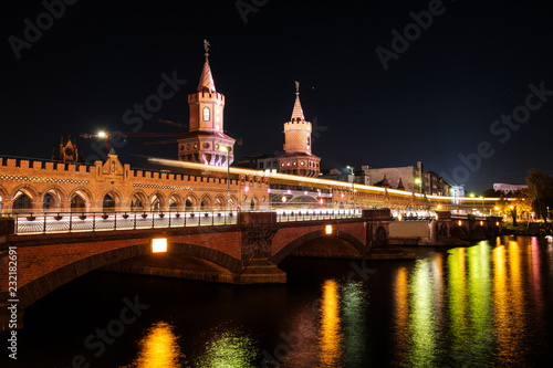 © hanohiki, Fototapeta premium Most Oberbaum (Oberbaumbruecke) w Berlinie, Kreuzberg nocą -