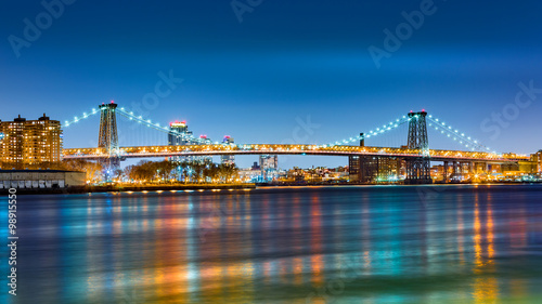 © mandritoiu, Obraz premium Most Williamsburg nocą, łączący East River między Brooklynem a Manhattanem