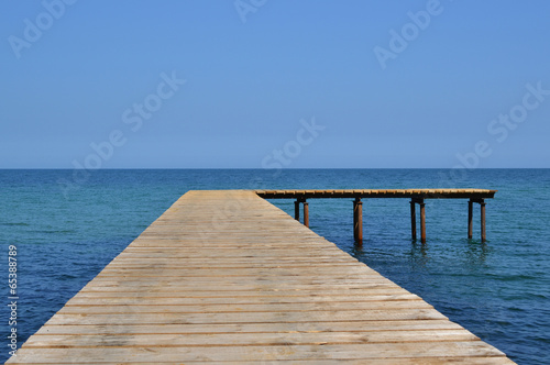 © stanslavov, Obraz premium Most z drewna z panoramą na morze