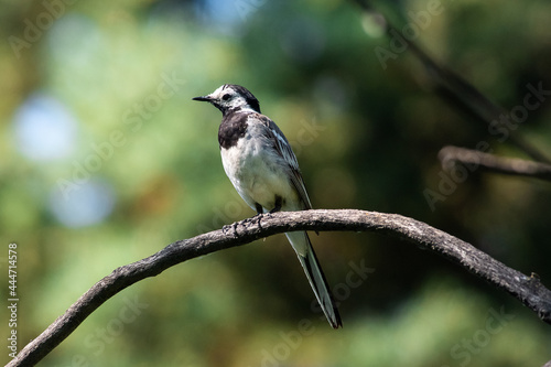 © airunreal, Obraz premium Motacilla alba sit on branch. White wagtail sit on summer grren scene
