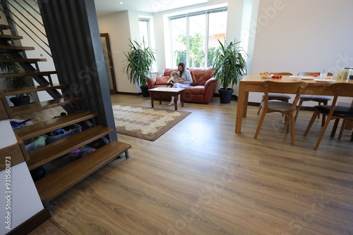 © 4Max, Fototapeta premium Mother and a child reading at home