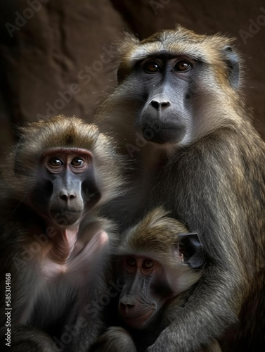 © Studiohood, Fototapeta premium Mother and baby baboon portrait, baboon photography