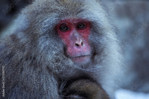 Naklejka premium Mother and Baby from Smow monkey family in the Jigokudani Park, Japan