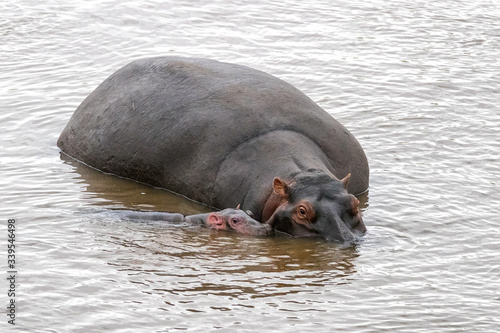 Fototapeta premium Mother and baby hippos in the Mara River