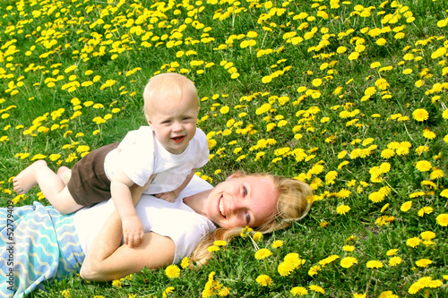 Fototapeta premium Mother and Baby in Dandelions