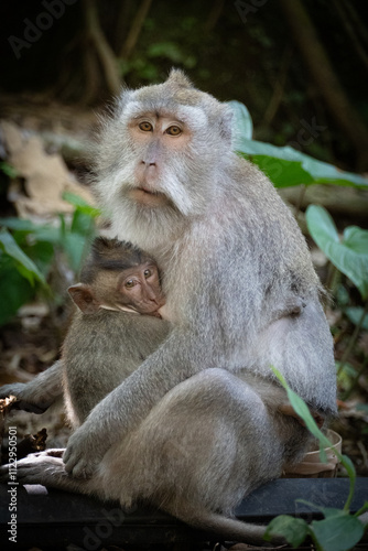© Bernhard, Fototapeta premium Mother and baby monkey cuddling