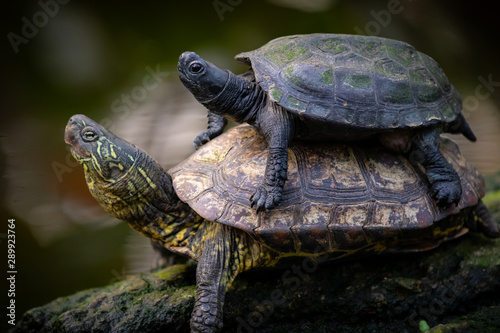 © Enlight fotografie, Obraz premium mother and baby mud turtles. baby turtle riding on mother turtle