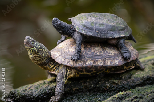 © Enlight fotografie, Obraz premium mother and baby mud turtles. baby turtle riding on mother turtle