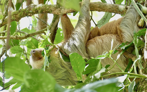 Naklejka premium Mother and Baby Sloths Sleeping in the Rainforest Canopy of Costa Rica