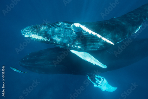 Naklejka premium Mother and Calf Humpback Whales in Caribbean