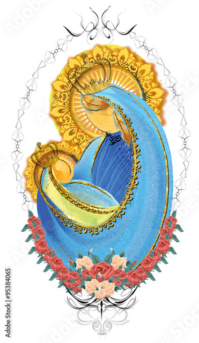 Naklejka premium Mother and child, blessed virgin mary with baby jesus crowned, h