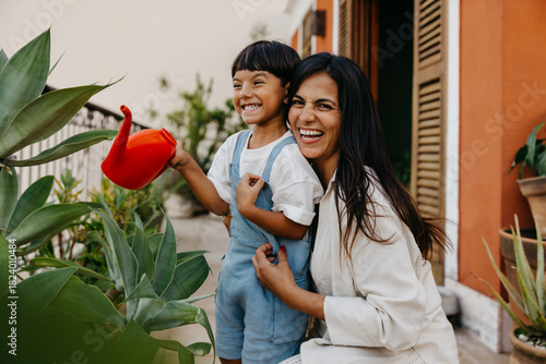 © (JLco) Julia Amaral, Obraz premium Mother and child enjoying gardening on a sunny day outdoors