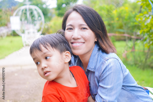 © pratan28, Fototapeta premium mother and child in park
