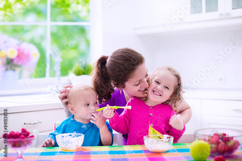 © famveldman, Fototapeta premium Mother and children having breakfast