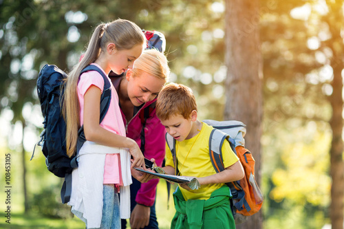 Fototapeta premium mother and children looking the map.