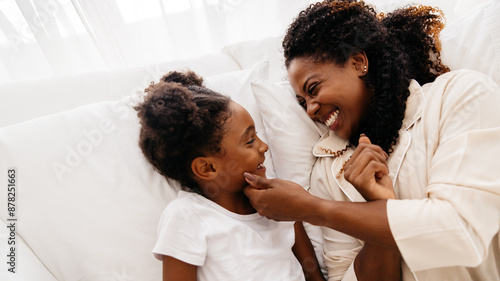 Obraz premium Mother and daughter bonding together in bed