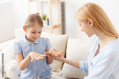 Fototapeta premium Mother and daughter doing manicure