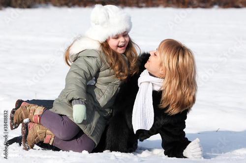 Obraz premium mother and daughter enjoying beautiful winter day