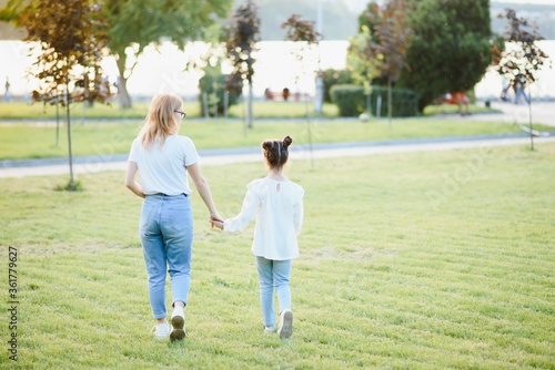 Fototapeta premium Mother and daughter having fun in the park. Happy family concept. Beauty...
