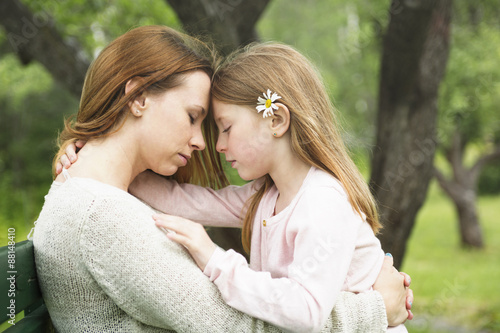 Fototapeta premium Mother and daughter in forest together