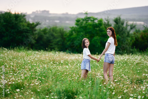 Fototapeta premium mother and daughter in the field