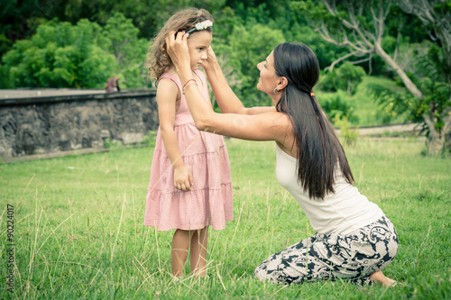 Naklejka premium Mother and daughter playing on the grass at the day time.