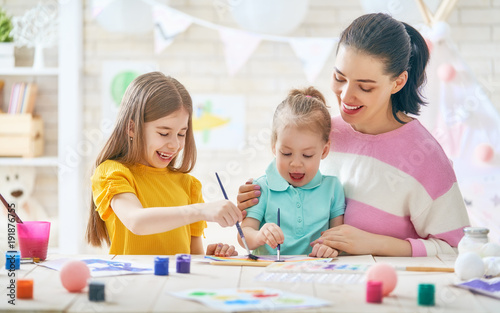 Fototapeta premium Mother and daughters painting together