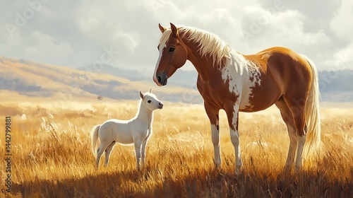 Obraz premium Mother and foal in golden field