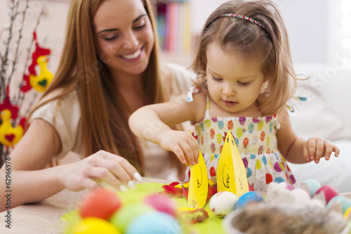 Fototapeta premium Mother and her baby playing in easter holiday