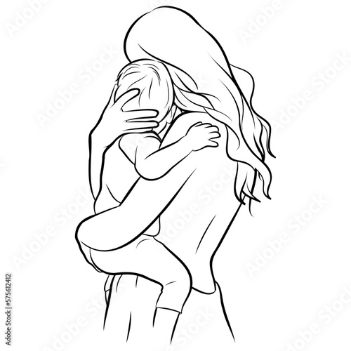 Obraz premium Mother and Kid Line Drawing.