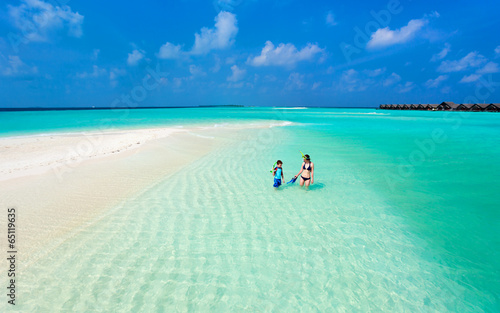 Fototapeta premium Mother and son at tropical beach