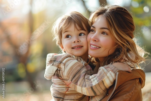 Obraz premium Mother and son playing together at the park