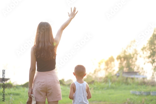 © buraratn, Fototapeta premium mother and son watching the sunset