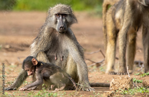 Obraz premium Mother baboon and baby isolated in the wild