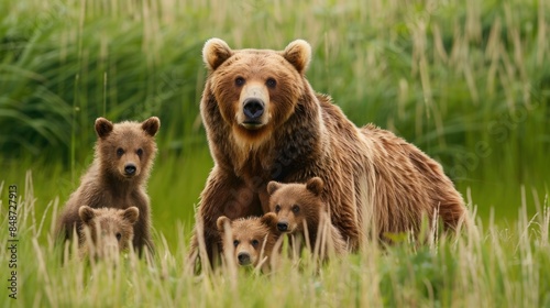 © ellisa_studio, Naklejka premium mother bear and cute baby bear, happy bear family,