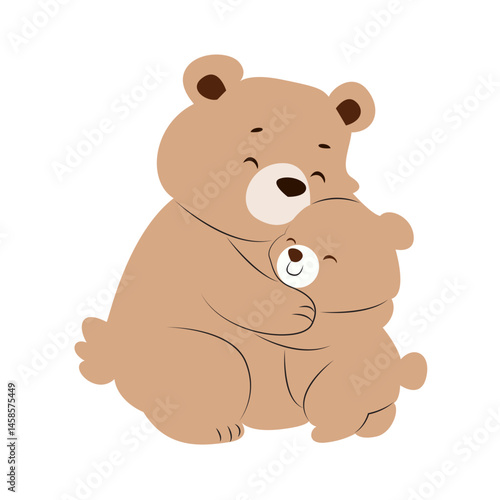 Fototapeta premium Mother Bear Cub Tender Hug Illustration