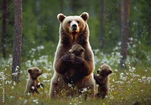 © vanzerim, Obraz premium Mother Bear with Cubs in Forest