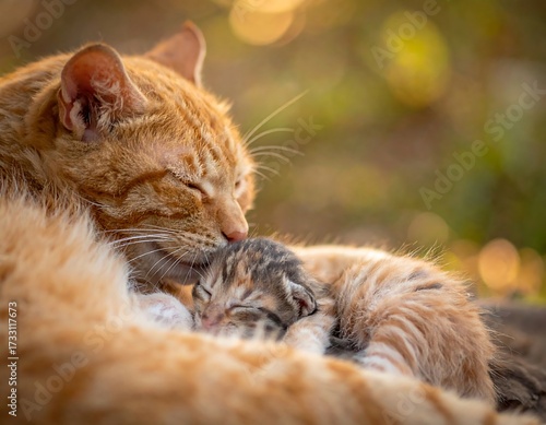© Joko, Naklejka premium Mother Cat Nurturing Kittens.