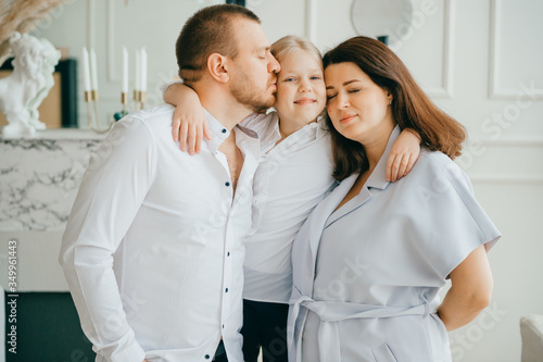 © benevolente, Fototapeta premium Mother, father and their child hugs together