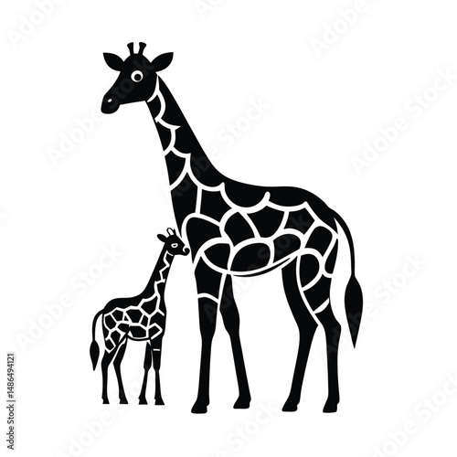 Naklejka premium Mother giraffe and baby giraffe silhouette art