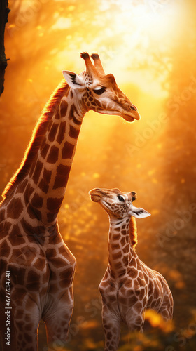 Fototapeta premium Mother giraffe with her baby