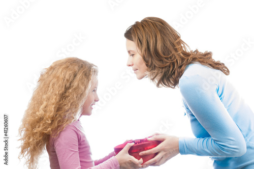 © Konstantin Yolshin, Fototapeta premium Mother giving present to daughter.